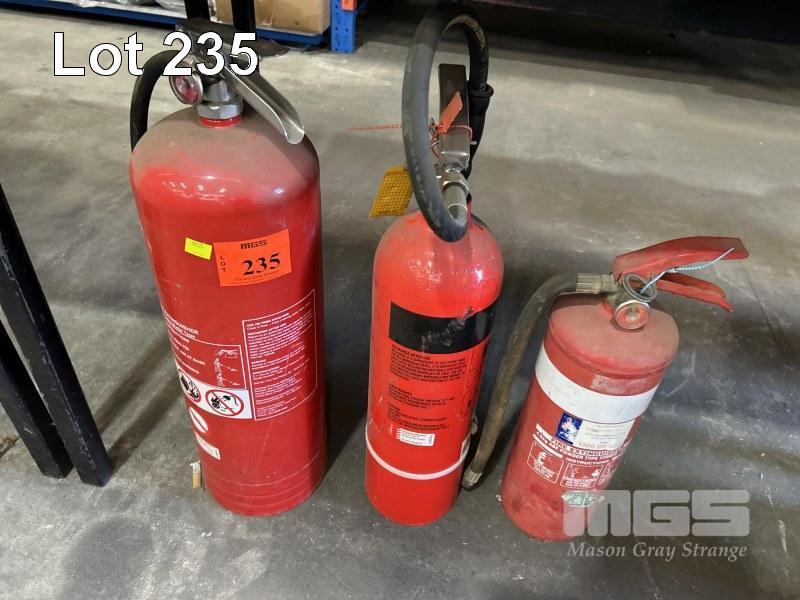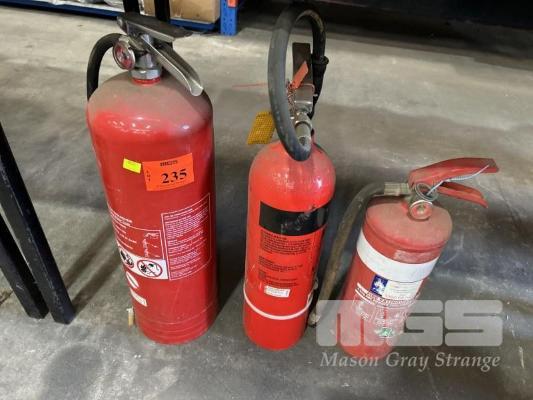 3 x FIRE EXTINGUISHERS, INCL 9 LITRE WATER, 3.5kg CO2 & 4.5kg POWDER
