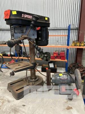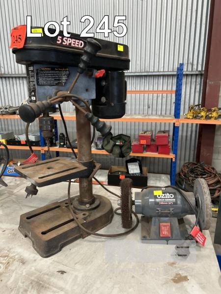 BENCH DRILL PRESS, OZITO MOD: DP350 WITH BENCH GRINDER, WIRE WHEEL OZITO, 240V