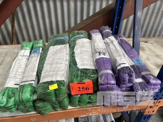 LIFTING SLINGS, NOBLE & SONS 4 x 2 TONNE @ 2.5m, GREEN & 4 x 2 TONNE @ 1m, GREEN 10 x 1 TONNE @ 1.5m, PURPLE