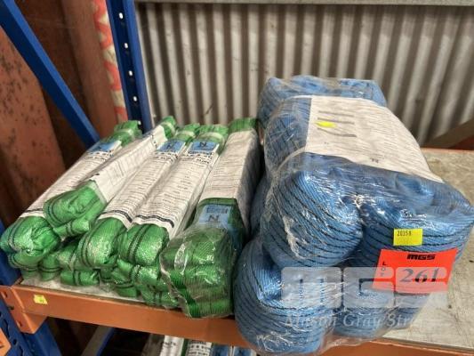 LIFTING SLINGS, NOBLE & SONS 2 x 8 TONNE @ 2m, BLUE & 1 x 2 TONNE @ 2.5m, GREEN 8 x 2 TONNE @ 1m, GREEN