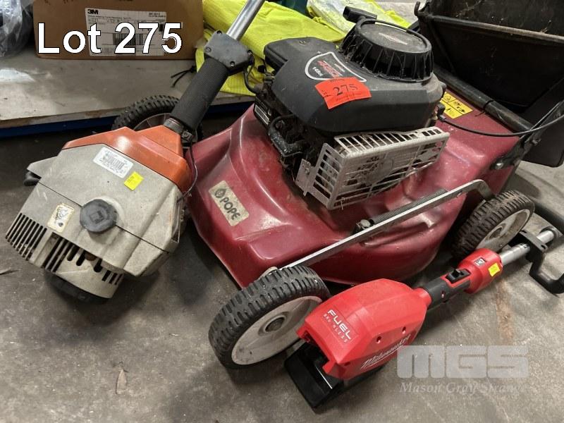 LAWN MOWER, POPE B&S 450 SERIES, 148cc WITH LINE TRIMMER, STIHL PETROL & MILWAUKEE FUEL M18 TRIMMER (INCOMPLETE)