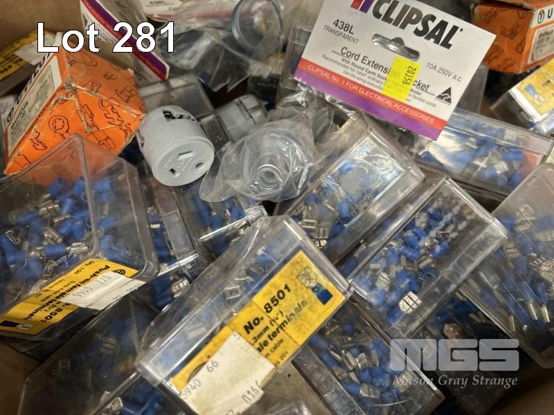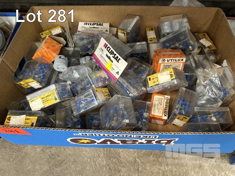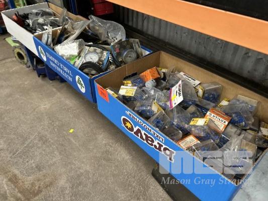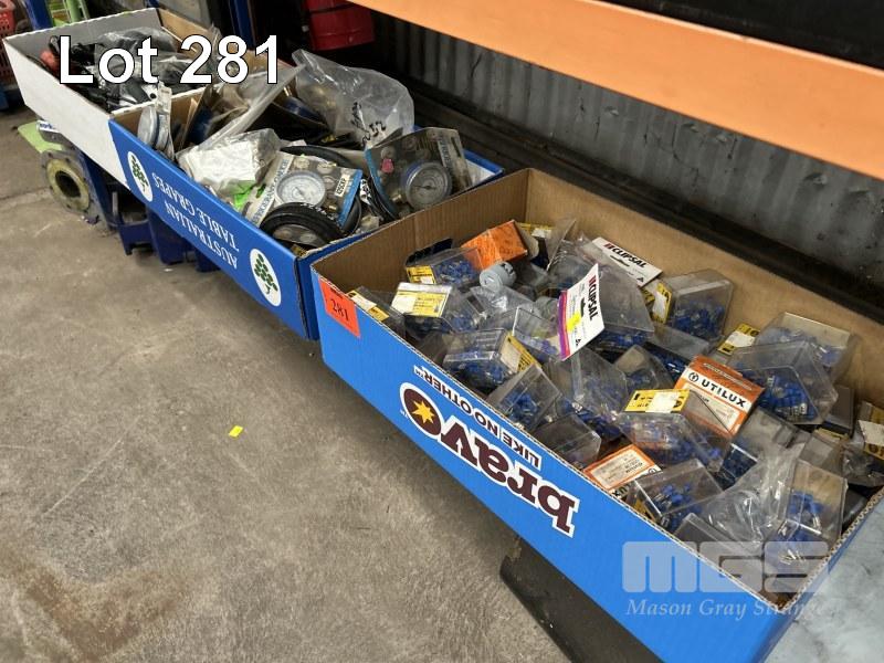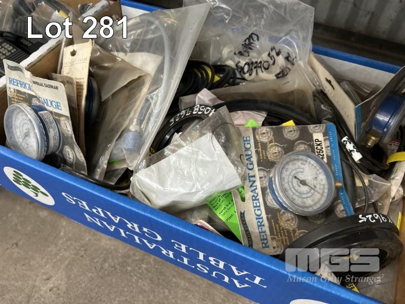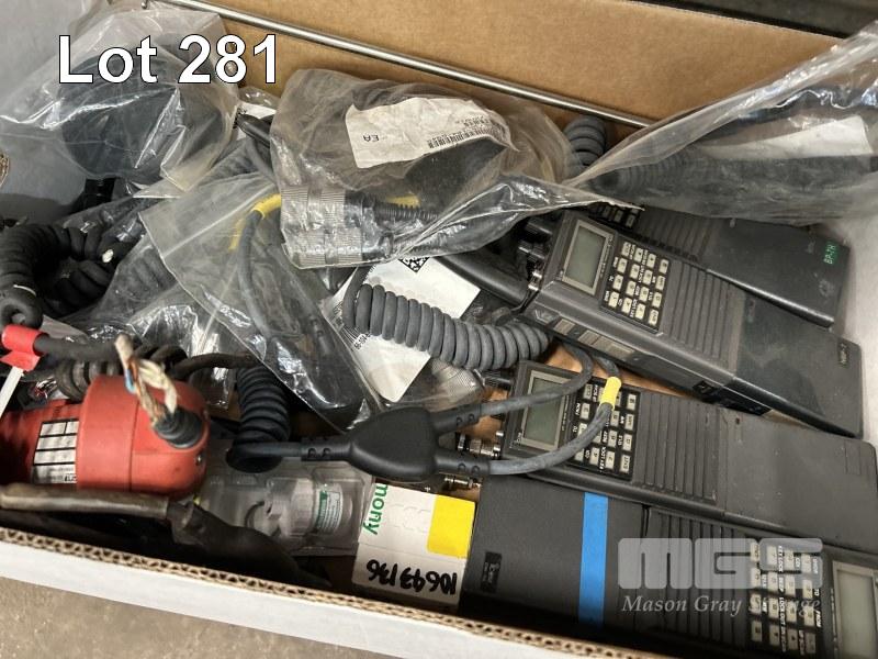 ELECTRONIC TERMINALS, HELLA & UTILUX ASSORTED TYPES & SIZES, (1 x BOX) REFRGERANT GAGUES, HOSES, SEALS, ETC. (1 x BOX) 2 WAY RADIOS, ETC. (1 x SHELF)