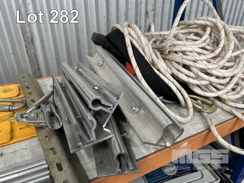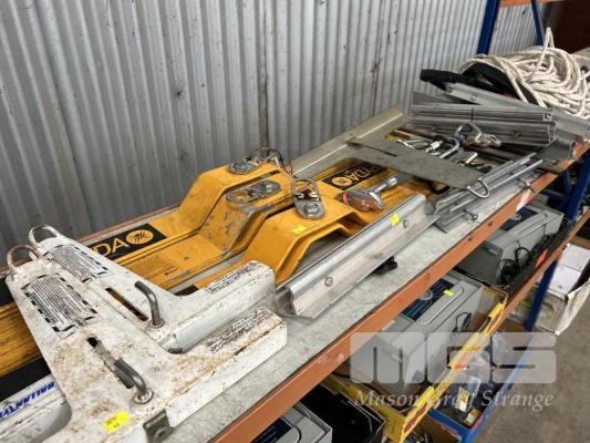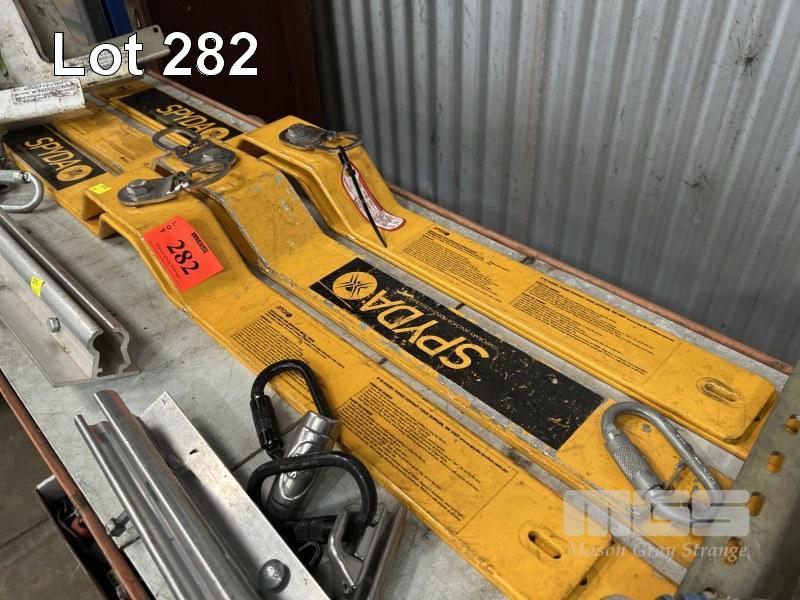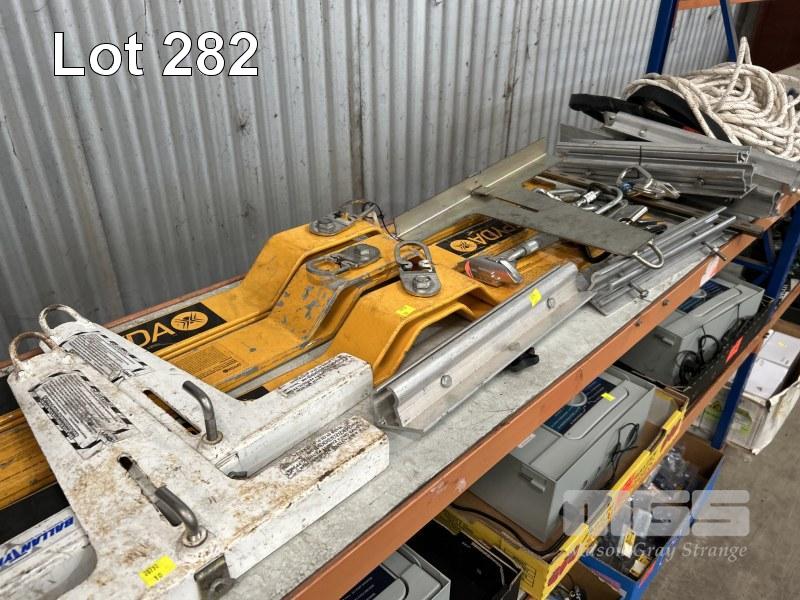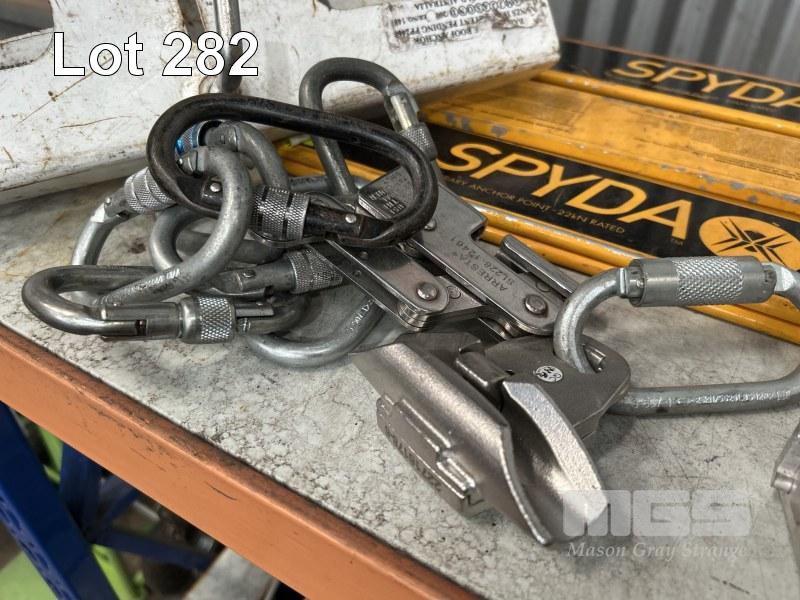 ROOF TEMPORARY ANCHOR POINTS & CLIMBING DEVICES INCLUDING 6 x SPYDA ANCHOR KITS WITH BALLANTYNE MOUNTS, RAILS, ROPE LOCKING & 5 x SELF ARRESTING DEVICES 1 x SHELF