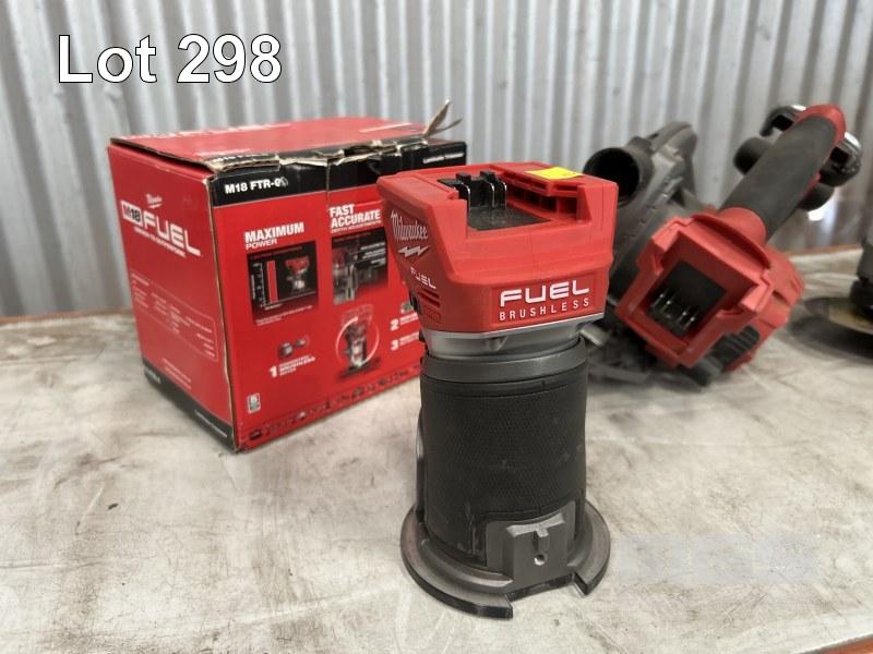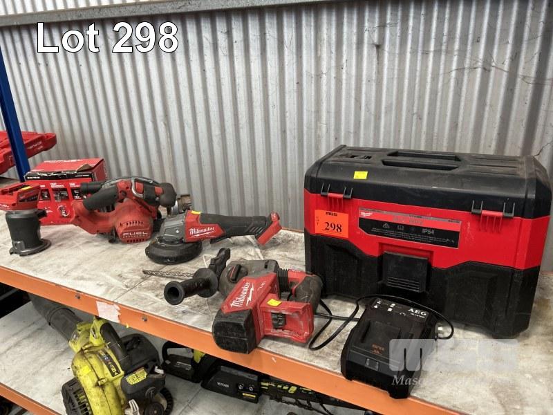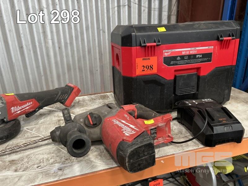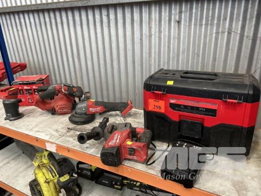 MILWAUKEE FUEL CIRCULAR SAW, ROTARY HAMMER DRILL, ANGLE GRINDER, LAMINATE TRIMMER & VACUUM CLEANER NO BATTERIES OR CHARGERS 1 x SHELF