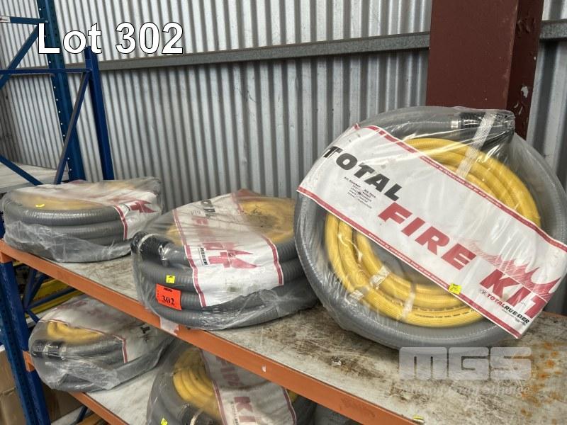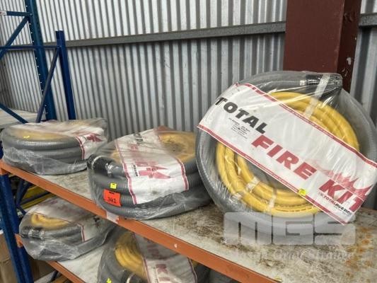3 x FIRE FIGHTING HOSE KITS, SUIT PUMP TOTAL RUBBER TYPE: FFK02 STANDARD INCLUDING 13mm FIRE HOSE & NOZZLE, SUCTION HOSE PICK UP WITH STRAINER FITTING, 40m DIAMETER AS NEW