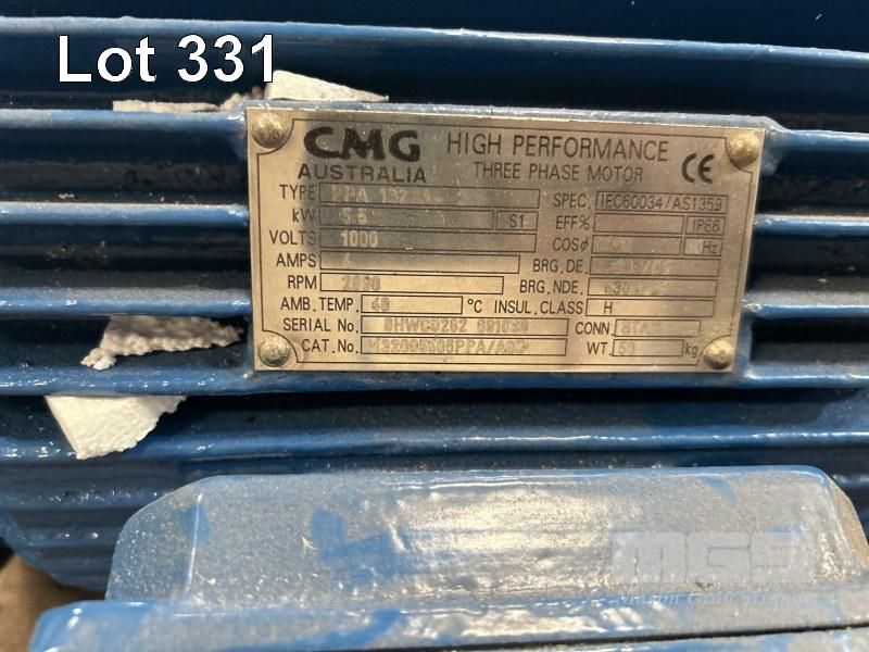 2 x ELECTRIC MOTORS, CMG 5.5kw, 415V AS NEW