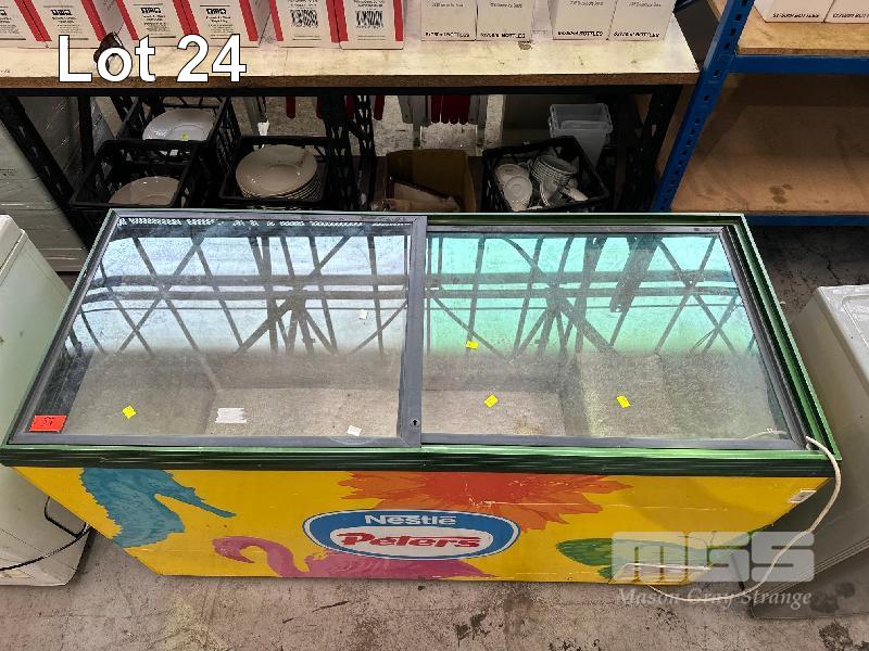 CHEST FREEZER, SLIDING GLASS DOORS 1550 x 650 x 900mm 240V, 10 AMP