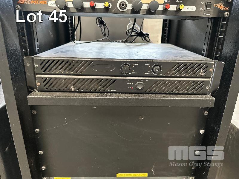 PA RACK, 2 x YAMAHA SPEAKERS, 1 x PROEL SUB, 2 CHANNEL AKG RECEIVER, CD PLAYER & AMP