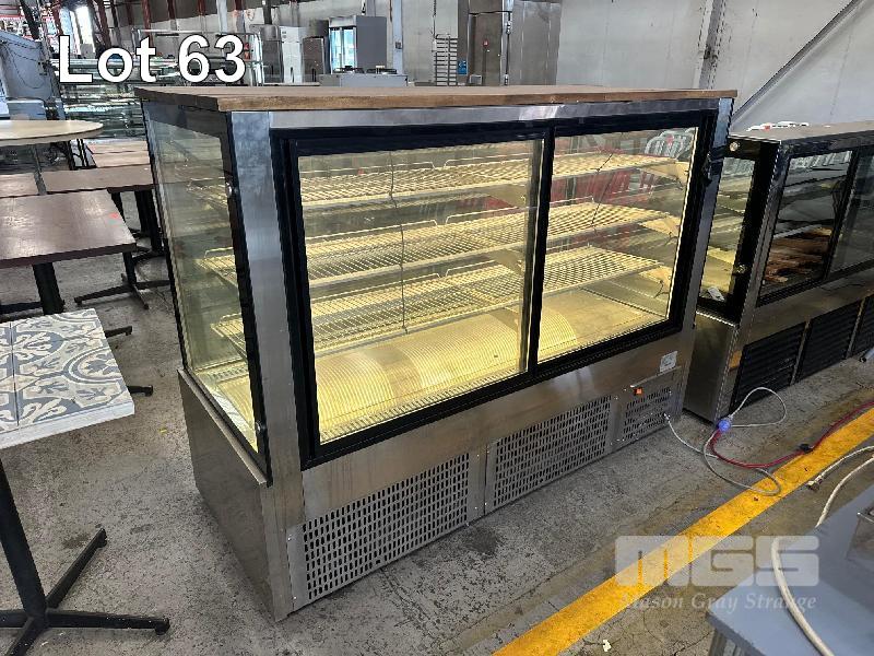 REFRIGERATED DISPLAY CASE, NOT COOLING, ILLUMINATED, MOBILE WITH WIRE SHELVES & RUSTIC WOODEN TOP 1800 x 750 x 1369mm (H) 240V
