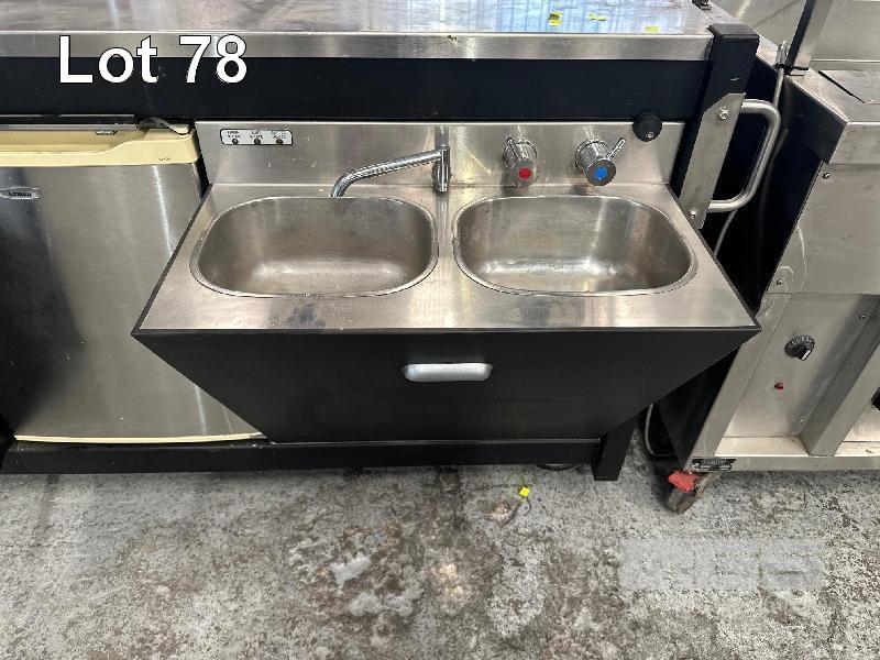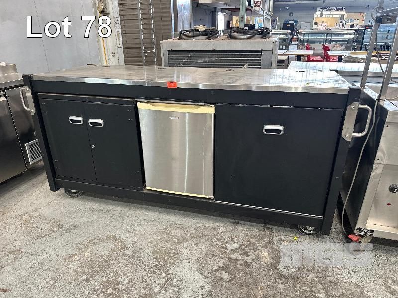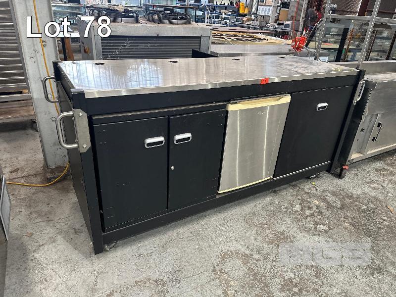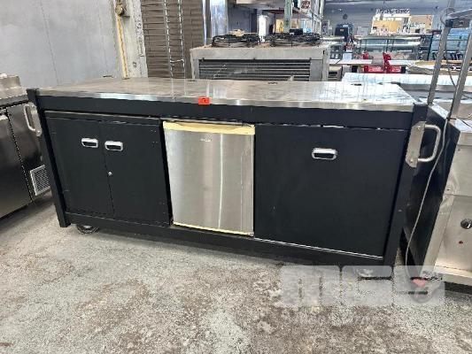 STAINLESS STEEL BENCH WITH INTEGRATED SINK, FRIDGE, LEMAIR MOD: RQ-85M & CABINETS 2160 x 750 x 1000mm