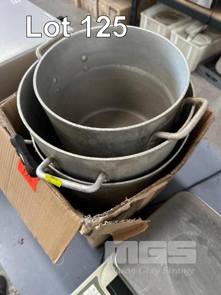 3 x ALUMINIUM POTS, INOX, 2 @ 20 LITRE & 1 @ 15 LITRE