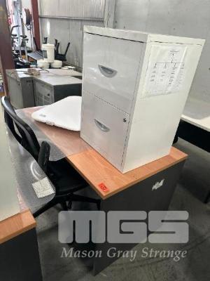TIMBER LAMINATE DESK, 1200 x 700mm WITH GAS LIFT CHAIR & 2 DRAWER UNDERDESK MOBILE