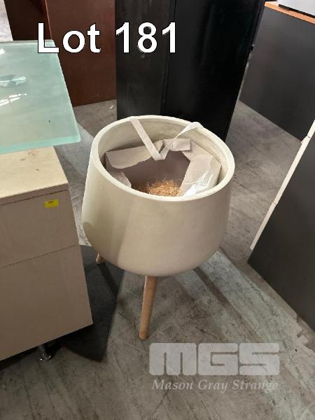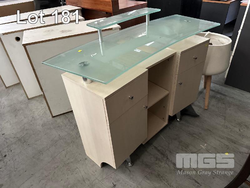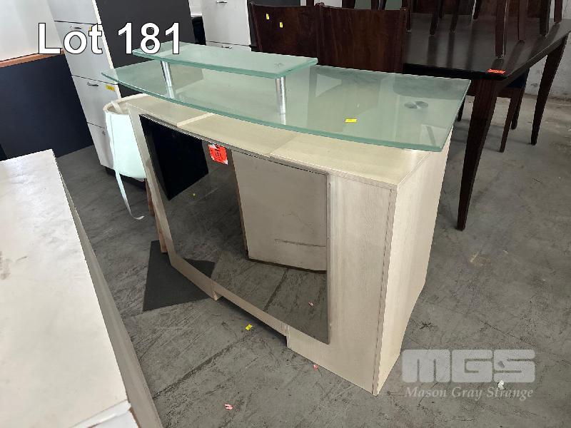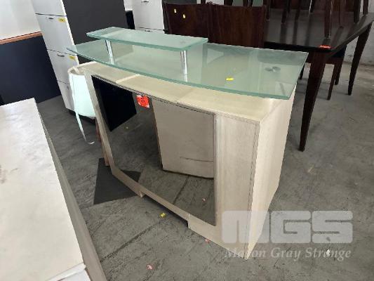 RECEPTION DESK, GLASS TOP, 1250 x 500mm & PLANTER POT