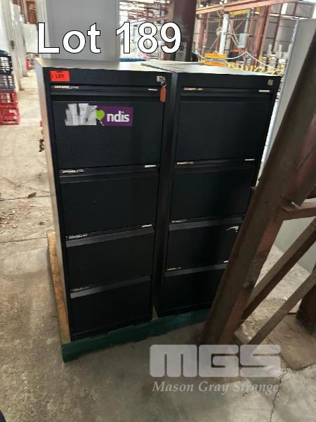 2 x 4 DRAWER STEEL FILING CABINETS, BLACK