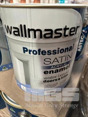 WALLMASTER, PROFESSIONAL ACRYLIC ENAMEL, WATER BASED, DOORS & TRIM, SATIN WHITE 29 x 4 LITRE