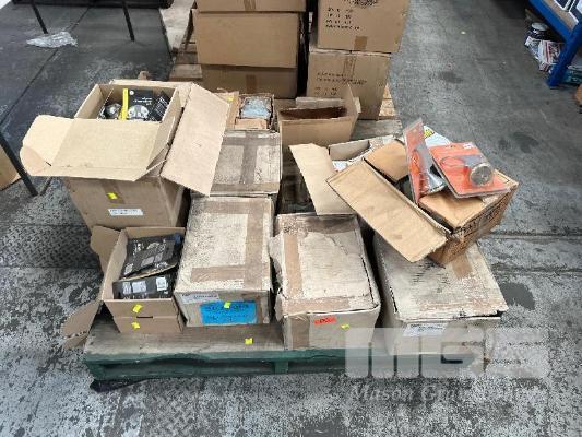 ASSORTED NEW HARDWARE, DOOR STOPS, HINGES