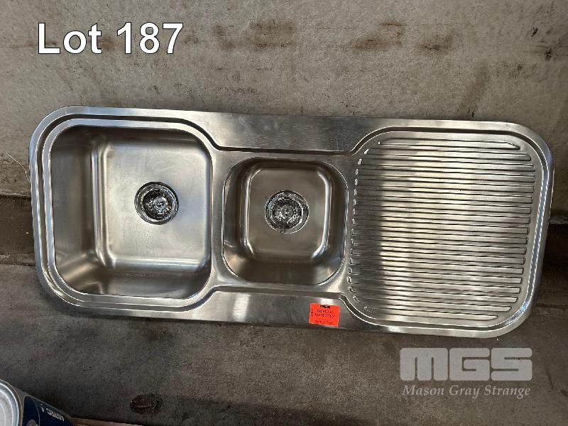6 x STAINLESS STEEL SINKS, TWIN BOWL