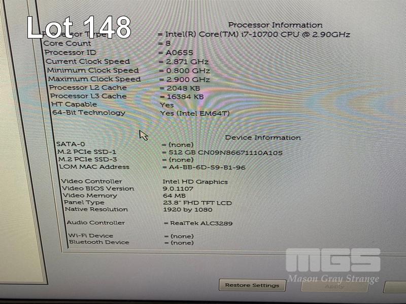ALL-IN-ONE PC, DELL OPTIPLEX 7480, CORE i7 10700 (10TH GEN) @ 2.9GHz, 16GB DDR4 RAM, 512GB NVMe M.2 SSD, INBUILT 23.8" FHD WIDESCREEN (1920x1080), INTEL HD GRAPHICS, WEBCAM, 5 x USB, 1 x USB-C, WINDOWS 11 HOME INSTALLED, KEYBOARD & MOUSE S/N:5CV1H73