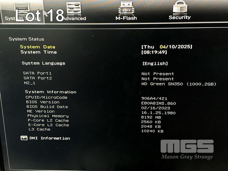 DESKTOP PC, MSI CUBI 5 12M-009BAU NUC, CORE i3 1215U (12TH GEN) @ 1.2GHz, 8GB RAM, 1TB NVMe M.2 SSD & POWER SUPPLY (NO KEYBOARD, NO MOUSE)
