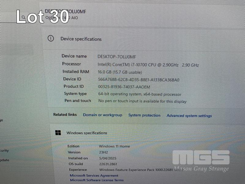 ALL-IN-ONE PC, DELL OPTIPLEX 7480, CORE i7 10700 (10TH GEN) @ 2.9GHz, 16GB DDR4 RAM, 512GB NVMe M.2 SSD, INBUILT 23.8" FHD WIDESCREEN (1920x1080), INTEL HD GRAPHICS, WEBCAM, 5 x USB, 1 x USB-C, WINDOWS 11 HOME INSTALLED, KEYBOARD & MOUSE S/N:5CV5H73