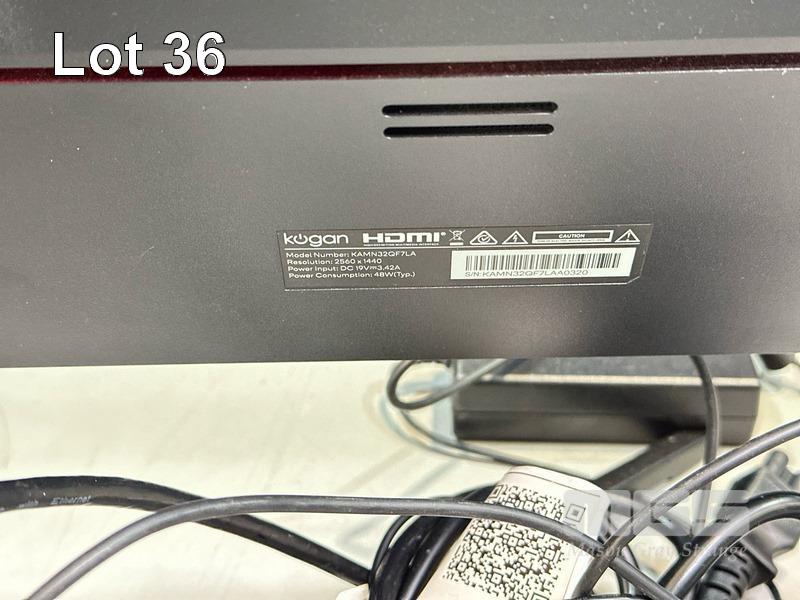 MONITOR, KOGAN 32" QHD IPS FREESYNC 75Hz FRAMELESS, MODEL KAMN32QF7LA, HDMI, DISPLAYPORT (WITH POWER SUPPLY & CABLES) S/N:A0320