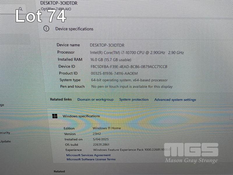 ALL-IN-ONE PC, DELL OPTIPLEX 7480, CORE i7 10700 (10TH GEN) @ 2.9GHz, 16GB DDR4 RAM, 512GB NVMe M.2 SSD, INBUILT 23.8" FHD WIDESCREEN (1920x1080), INTEL HD GRAPHICS, WEBCAM, 5 x USB, 1 x USB-C, WINDOWS 11 HOME INSTALLED, KEYBOARD & MOUSE S/N:5DR7H73