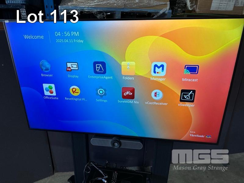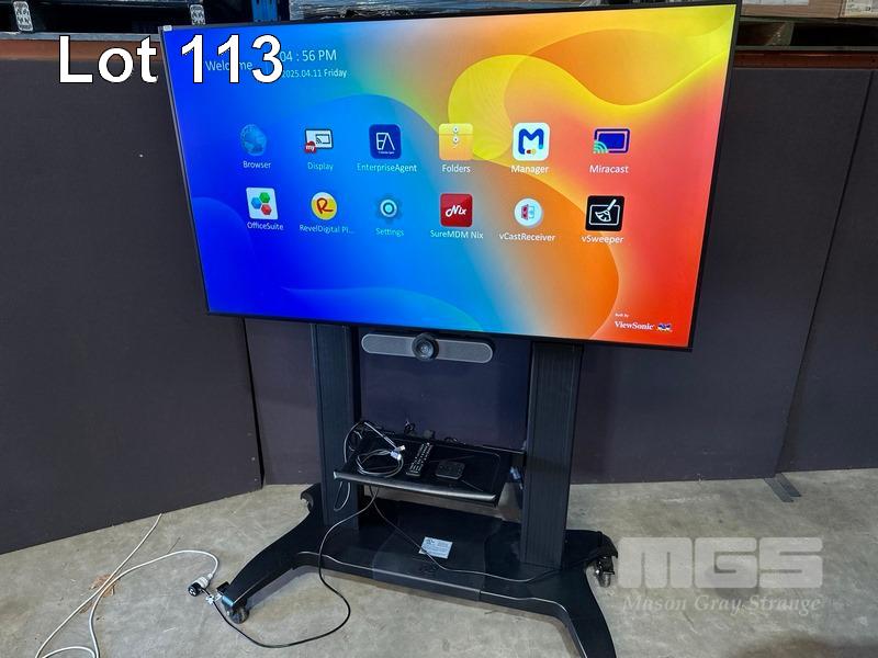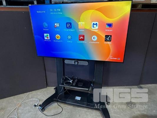 VIEWSONIC CDE6520 65" 4K ULTRA HD COMMERICAL PRESENTATION DISPLAY WITH REMOTE, LOGITECH MEETUP CAMERA, EXPANSION MIC & REMOTE, ON NORTH BAYOU FLOOR STAND TV MOBILE CART, CF100