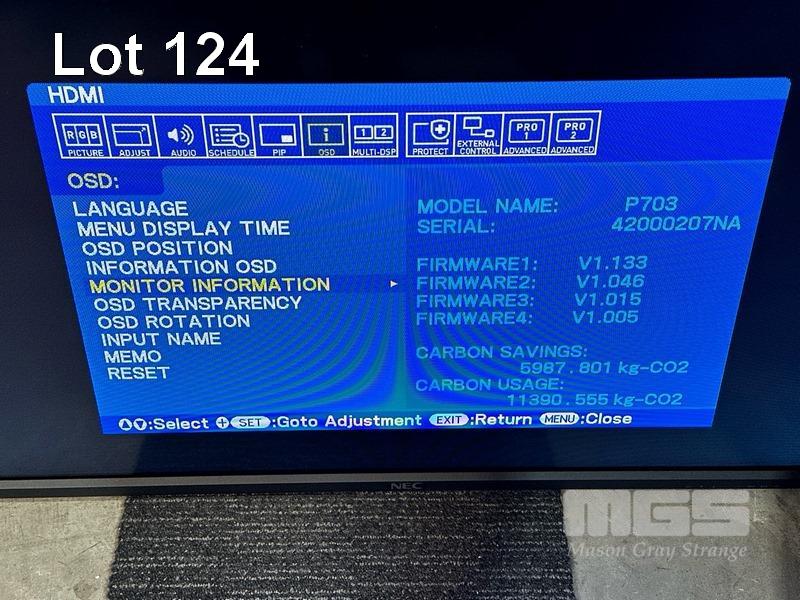 MONITOR, NEC MULTISYNC P703 70" COMMERCIAL LCD DISPLAY (NO REMOTE, NO STAND)
