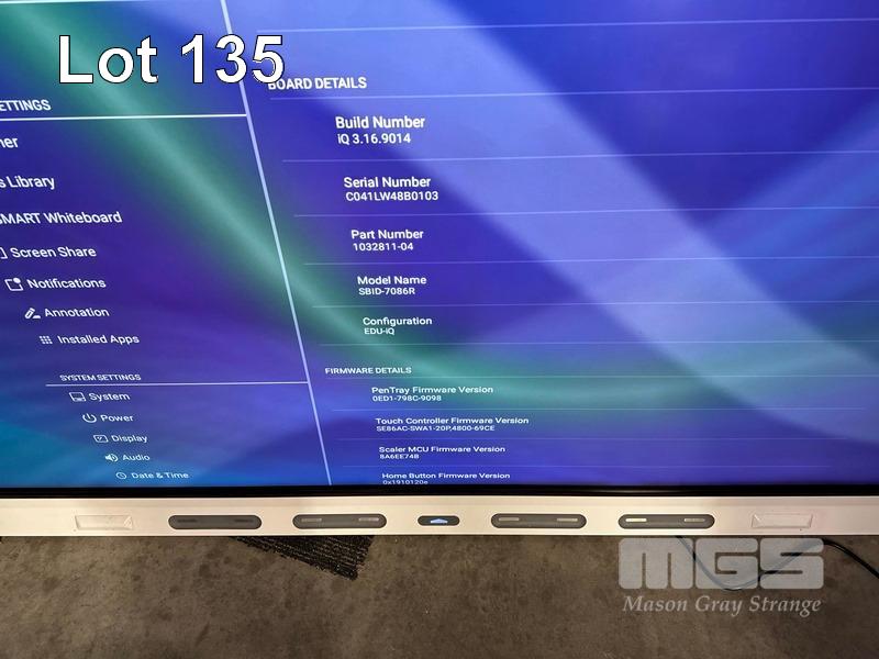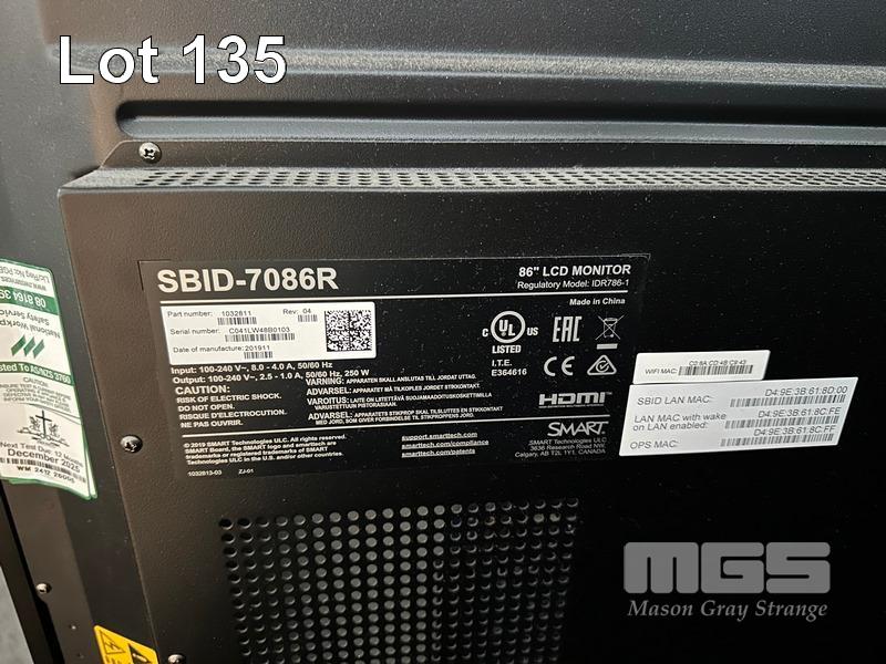 SMART BOARD 7000 SERIES 86" 4K ULTRA HD INTERACTIVE DISPLAY, MODEL SBID-7086R WITH PENS & ERASER S/N:C041LW48B0103
