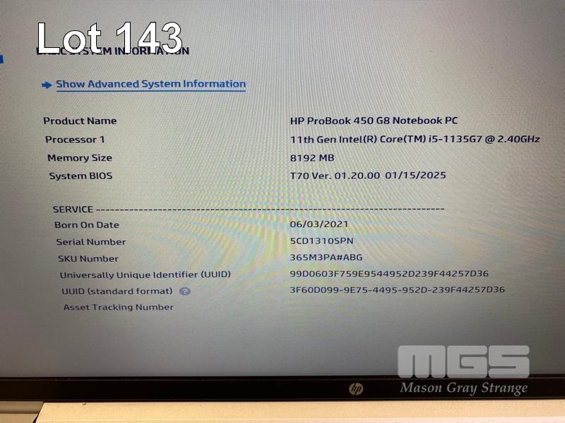 LAPTOP, HP PROBOOK 450 G8, CORE i5 1135G7 (11TH GEN) @ 2.4GHz, 8GB DDR4, 256GB NVMe M.2 SSD, 15.6" WIDESCREEN (!366x768), Wi-Fi, BLUETOOTH, WINDOWS 11 PRO INSTALLED & POWER SUPPLY (NOTE: SCRATCHES ON CASING) S/N:5CD1310SPN