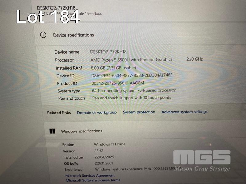 LAPTOP, HP ENVY x360 CONVERTIBLE 15-ee1025AU, AMD RYZEN 5 5500U @ 2.1GHz, 8GB DDR4 RAM, 256GB NVMe M.2 SSD, 15.6: TOUCHSCREEN (1920x1080), Wi-Fi, BLUETOOTH, WINDOWS 11 HOME INSTALLED & POWER SUPPLY S/N:CND141F78H