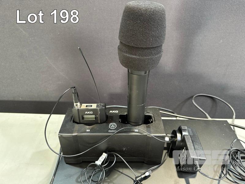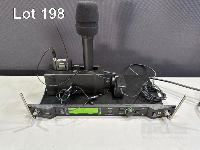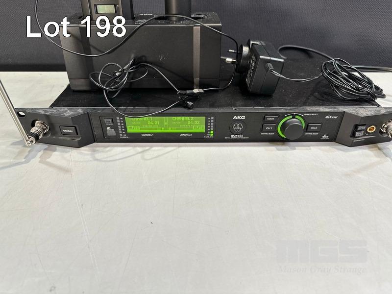 AKG DSR800 DIGITAL WIRELESS STATIONARY RECEIVER WITH 1 x AKG DHT800 HANDHELD MICROPHONE, 1 x AKG DPT800 BODYPACK TRANSMITTER, 1 x LAPEL MICROPHONE, 1 x AKG CU800 CHARGING UNIT & 1 x POWER SUPPLY