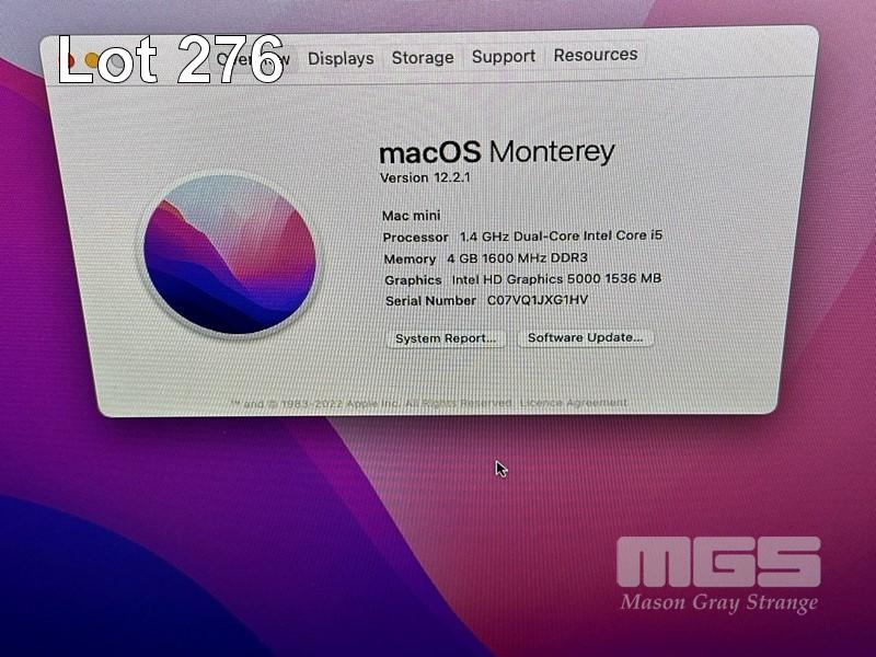 APPLE MAC MINI (A1347), CORE i5 4260U (4TH GEN) @ 1.4GHz, 4GB DDR3 RAM, 500GB SATA HDD, INTEL HD GRAPHICS 5000, Wi-Fi, BLUETOOTH, MAC OS 12 INSTALLED (NO KEYBOARD, NO MOUSE, NO CABLE) S/N:C07VQ1JXG1HV