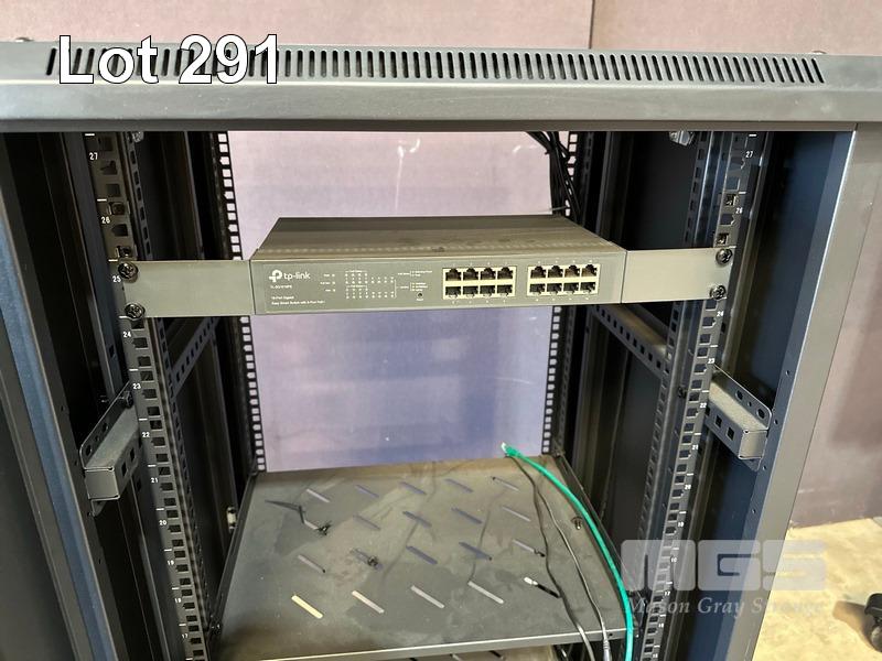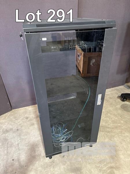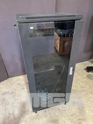 DATA RACK CABINET, DUELTEK, 27RU, GLASS FRONT PANEL, MOBILE, KEYS, 60 x 60cm, WITH TP-LINK TL-SG1016PE 16-PORT GIGABIT SWITCH, POWER BOARD & COOLING FANS