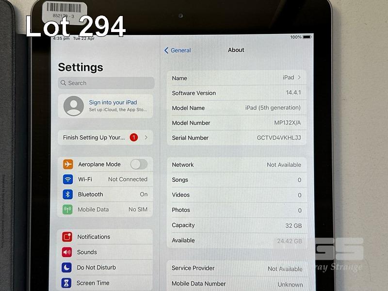 APPLE iPAD 5TH GEN, 32GB, Wi-Fi, CELLULAR, SPACE GREY, MODEL MP1J2X/A, A1823 (NO CABLE, NO CHARGER) S/N:GCTVD4VKHLJJ