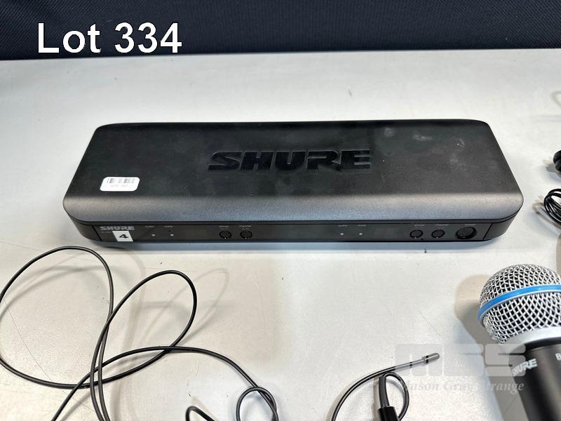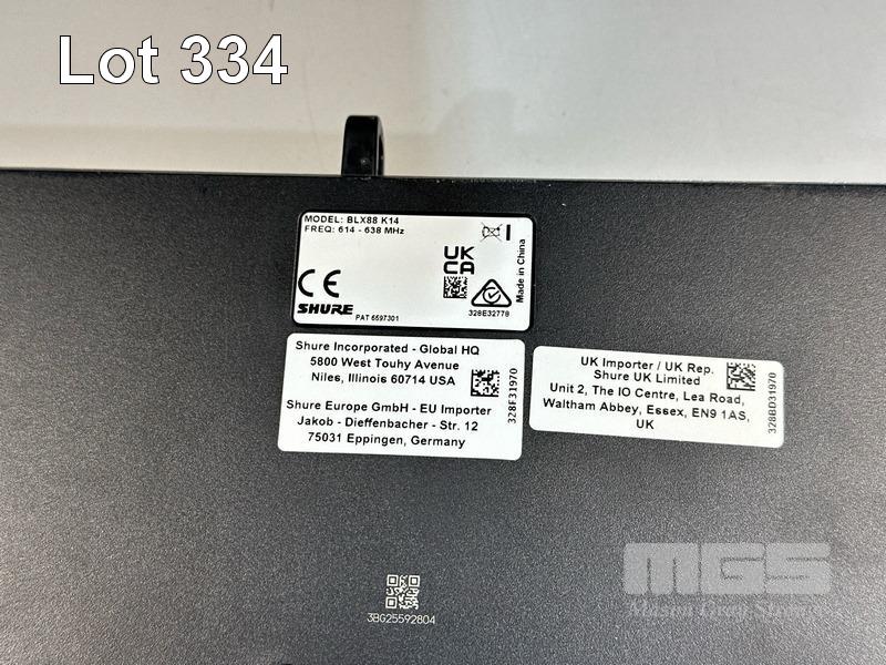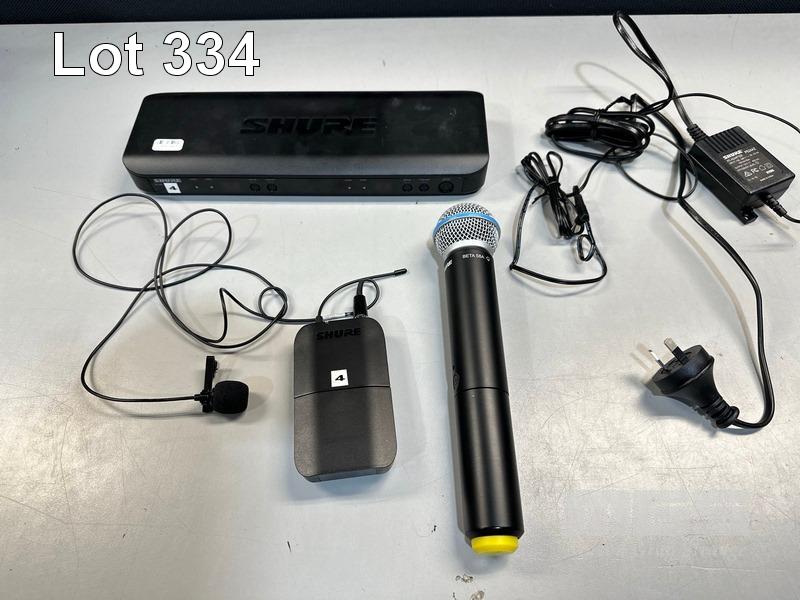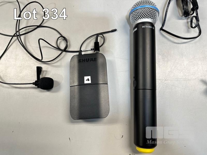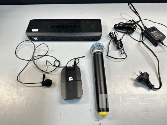 SHURE BLX88 K14 DUAL WIRELESS RECEIVER, 614-638MHz WITH SHURE BETA 58A BLX2 HANDHELD MICROPHONE, SHURE BLX1 BODYPACK TRANSMITTER & LAPEL MICROPHONE