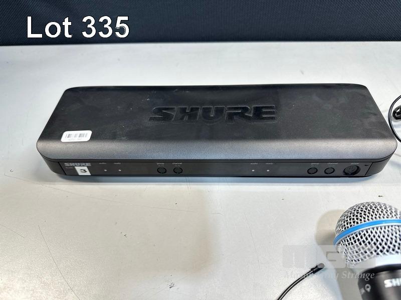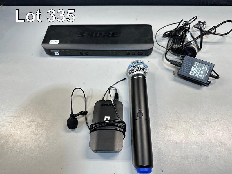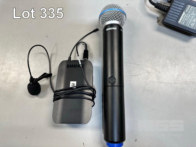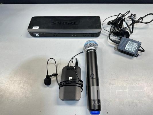 SHURE BLX88 K14 DUAL WIRELESS RECEIVER, 614-638MHz WITH SHURE BETA 58A BLX2 HANDHELD MICROPHONE, SHURE BLX1 BODYPACK TRANSMITTER & LAPEL MICROPHONE