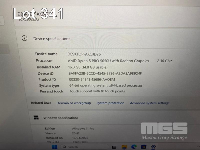 LAPTOP, LENOVO THINKPAD T14 Gen2, TYPE 20XL, AMD RYZEN 5 PRO 5650U @ 2.3GHz, 16GB DDR4 RAM, 512GB NVMe M.2 SSD, 14" TOUCHSCREEN (1920x1080), Wi-Fi, BLUETOOTH, WINDOWS 11 PRO INSTALLED & USB-C POWER SUPPLY (NOTE: MARKS ON SCREEN) S/N:PF3PV79A