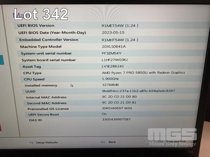 LAPTOP, LENOVO THINKPAD T14 Gen2, TYPE 20XL, AMD RYZEN 7 PRO 5850U @ 1.9GHz, 32GB DDR4 RAM, 1TB NVMe M.2 SSD, 14" TOUCHSCREEN (1920x1080), Wi-Fi, BLUETOOTH, WINDOWS 11 PRO INSTALLED (NO USB-C POWER SUPPLY) (NOTE: MINOR CASING DAMAGE, MESSAGE ON STARTUP "BOTTOM COVER TAMPER DETECTION", MARKS ON SCREEN) S/N:PF3ZM54Y