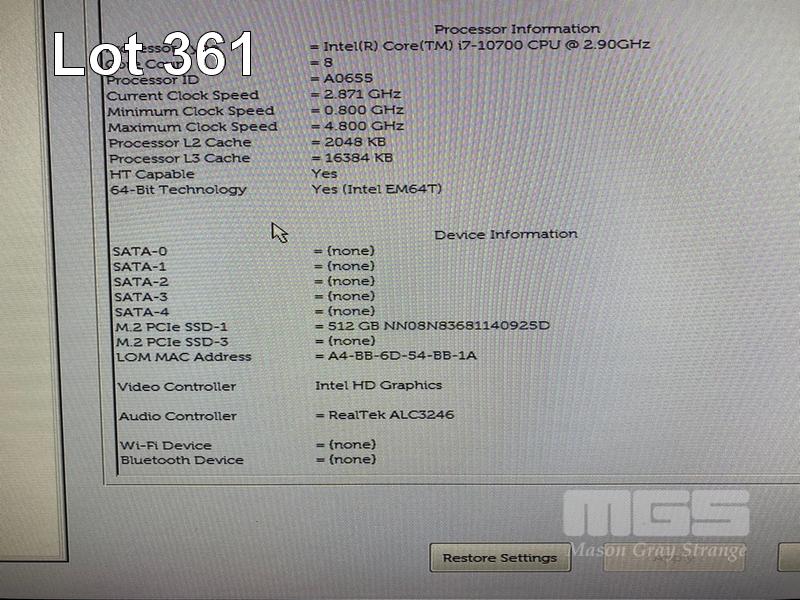 MINI-TOWER PC, DELL PRECISION 3640 WORKSTATION, CORE i7 10700 (10TH GEN) @ 2.9GHz, 16GB DDR4 RAM, 512GB NVMe M.2 SSD, 5GB NVIDIA QUADRO P2200 VIDEO (4DP), WINDOWS 11 PRO INSTALLED, KEYBOARD & MOUSE S/N:4GK6H73
