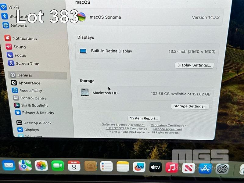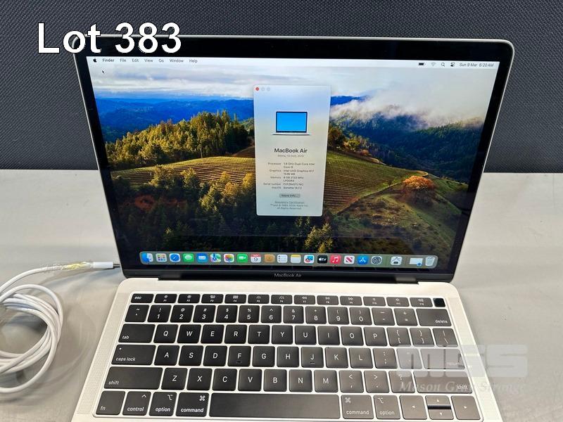 LAPTOP, APPLE MACBOOK AIR (A1932), CORE i5 8210Y (8TH GEN) @ 1.6GHz, 8GB DDR3 RAM, 128GB SSD, 13.3" RETINA DISPLAY (2560x1600), INTEL UHD GRAPHICS 617, Wi-Fi, BLUETOOTH, MAC OS 14 INSTALLED & USB-C POWER SUPPLY (NOTE: MINOR DAMAGE TO CASING, MARKS ON SCREEN) S/N:FVFZM45TLYWJ