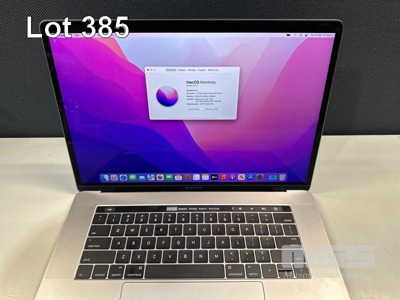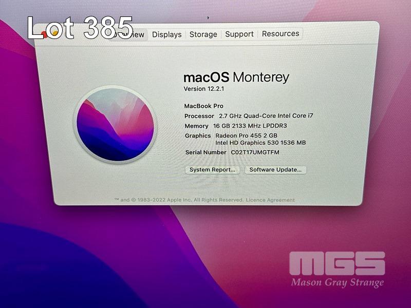 LAPTOP, APPLE MACBOOK PRO (A1707), CORE i7 6820HQ (6TH GEN) @ 2.7GHz, 16GB DDR3 RAM, 512GB SSD, 15.4" RETINA DISPLAY (2880x1800), 2GB RADEON PRO 455 VIDEO, INTEL HD GRAPHICS 630, Wi-Fi, BLUETOOTH, MAC OS 12 INSTALLED (NO USB-C POWER SUPPLY) (NOTE: SWOLLEN BATTERY) S/N:C02T17UMGTFM