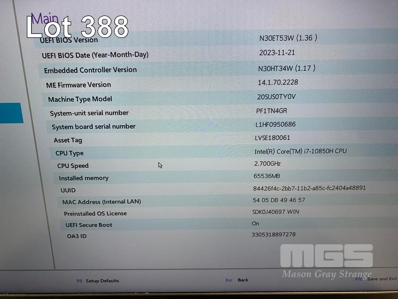 LAPTOP, LENOVO THINKPAD P15 GEN 1 MOBILE WORKSTATION, TYPE 20SU, CORE i7 10850H (10TH GEN) @ 2.7GHz, 64GB DDR4 RAM, 1TB NVMe M.2 SSD, 15.6" WIDESCREEN (1920x1080), 4GB NVIDIA QUADRO T2000 VIDEO, Wi-Fi, BLUETOOTH, WINDOWS 11 PRO INSTALLED (NO POWER SUPPLY) (NOTE: DAMAGED CASING, ARROW KEY LOOSE) S/N:PF1TN4GR