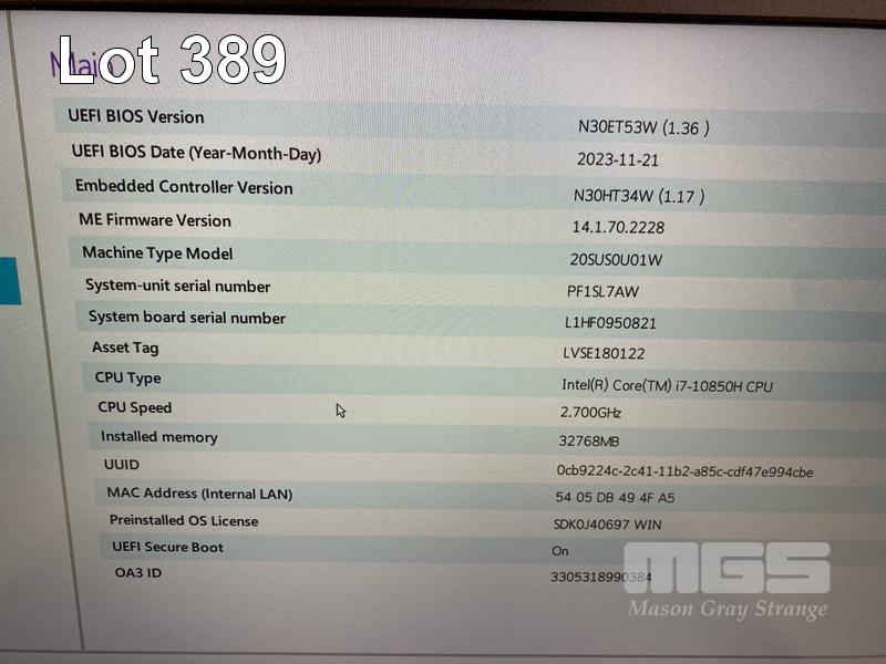 LAPTOP, LENOVO THINKPAD P15 GEN 1 MOBILE WORKSTATION, TYPE 20SU, CORE i7 10850H (10TH GEN) @ 2.7GHz, 32GB DDR4 RAM, 1TB NVMe M.2 SSD, 512GB NVMe M.2 SSD, 15.6" WIDESCREEN (1920x1080), 4GB NVIDIA QUADRO T2000 VIDEO, Wi-Fi, BLUETOOTH, WINDOWS 11 PRO INSTALLED & POWER SUPPLY (NOTE: MARKS ON SCREEN) S/N:PF1SL7AW