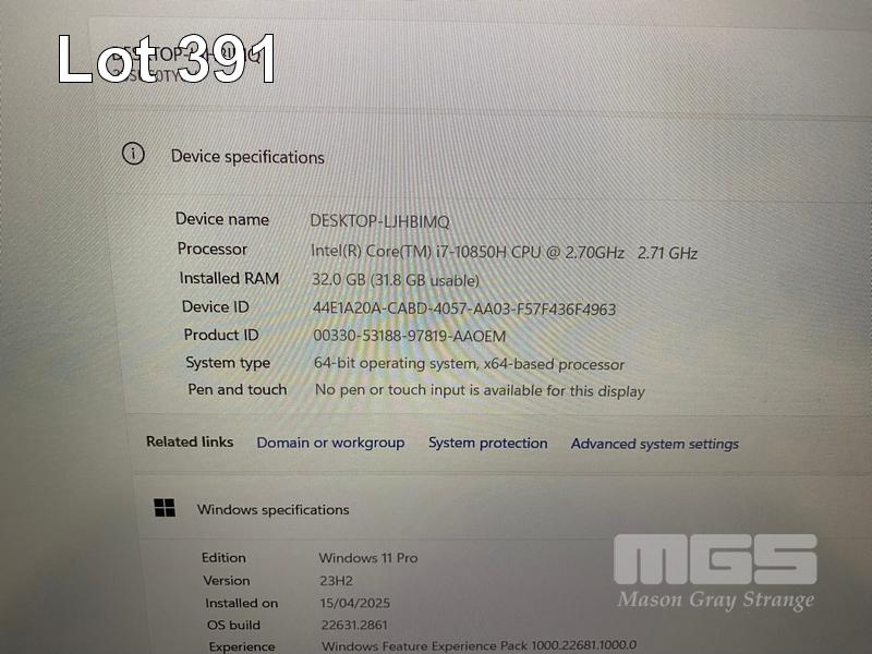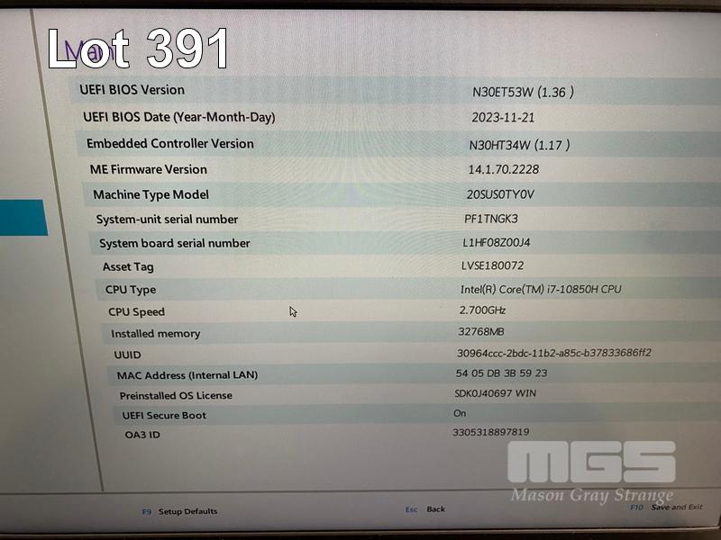 LAPTOP, LENOVO THINKPAD P15 GEN 1 MOBILE WORKSTATION, TYPE 20SU, CORE i7 10850H (10TH GEN) @ 2.7GHz, 32GB DDR4 RAM, 1TB NVMe M.2 SSD, 15.6" WIDESCREEN (1920x1080), 4GB NVIDIA QUADRO T2000 VIDEO, Wi-Fi, BLUETOOTH, WINDOWS 11 PRO INSTALLED (NO POWER SUPPLY) (NOTE: DAMAGED SCREEN HINGE, MARKS ON SCREEN) S/N:PF1TNGK3