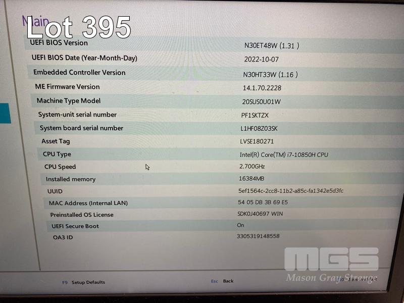 LAPTOP, LENOVO THINKPAD P15 GEN 1 MOBILE WORKSTATION, TYPE 20SU, CORE i7 10850H (10TH GEN) @ 2.7GHz, 16GB DDR4 RAM, 512GB NVMe M.2 SSD, 15.6" WIDESCREEN (1920x1080), 4GB NVIDIA QUADRO T2000 VIDEO, Wi-Fi, BLUETOOTH, WINDOWS 11 PRO INSTALLED & POWER SUPPLY (NOTE: MARKS ON SCREEN) S/N:PF1SKTZX