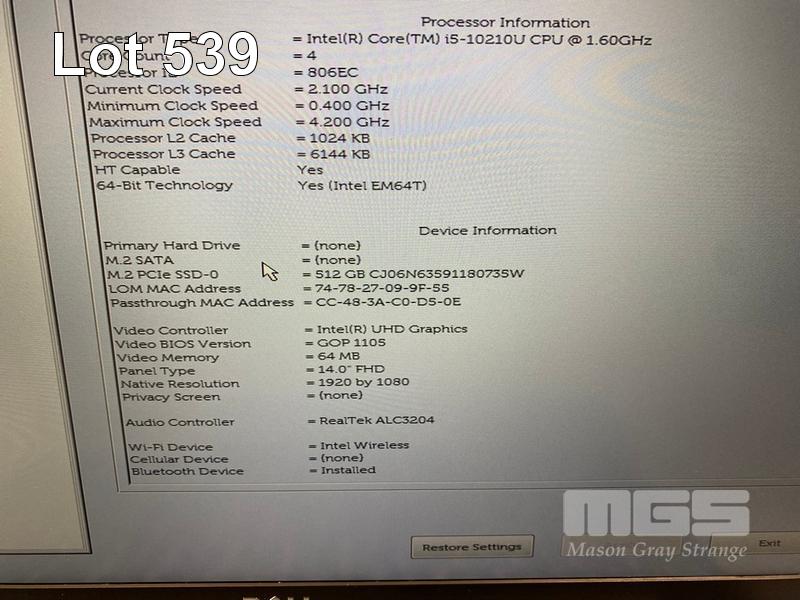 LAPTOP, DELL LATITUDE 5410, CORE i5 10210U (10TH GEN) @ 1.6GHz, 8GB DDR4 RAM, 512GB NVMe M.2 SSD, 14" WIDESCREEN (1920x1080), INTEL UHD GRAPHICS, Wi-Fi, BLUETOOTH, WINDOWS 11 HOME INSTALLED & POWER SUPPLY (NOTE: CASING PEELING, MINOR MARKS ON SCREEN) S/N:182H373