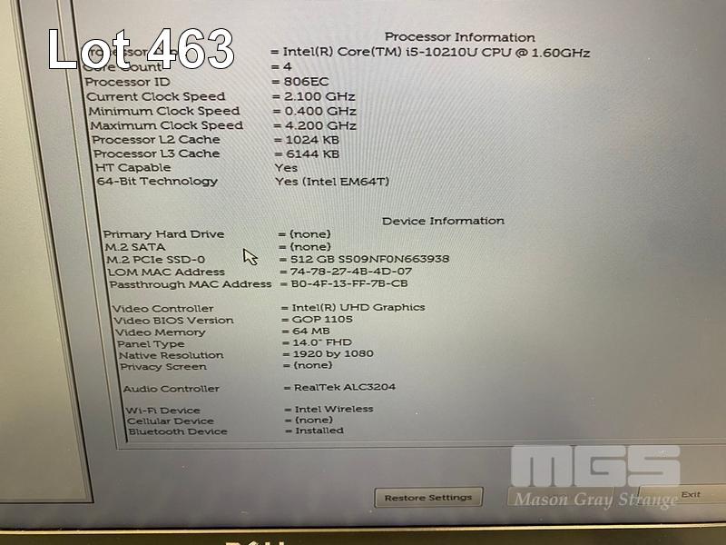 LAPTOP, DELL LATITUDE 5410, CORE i5 10210U (10TH GEN) @ 1.6GHz, 8GB DDR4 RAM, 512GB NVMe M.2 SSD, 14" WIDESCREEN (1920x1080), INTEL UHD GRAPHICS, Wi-Fi, BLUETOOTH, WINDOWS 11 HOME INSTALLED (NO POWER SUPPLY) (NOTE: BATTERY NOT HOLDING CHARGE, CASING PEELING, MINOR MARKS ON SCREEN) S/N:GT2V373