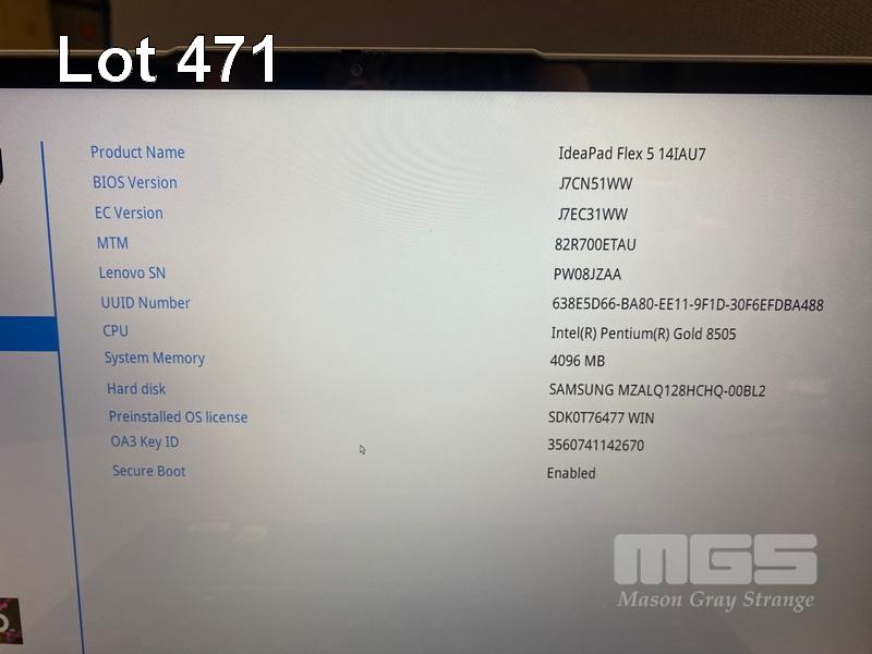 LAPTOP, LENOVO IDEAPAD FLEX 5, 14IAU7, PENTIUM GOLD 8505 @ 1.2GHz, 4GB RAM, 128GB NVMe M.2 SSD, 14" TOUCHSCREEN (1920x1080), Wi-Fi, BLUETOOTH, WINDOWS 11 HOME INSTALLED & POWER SUPPLY S/N:PW08JZAA