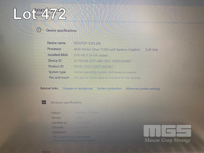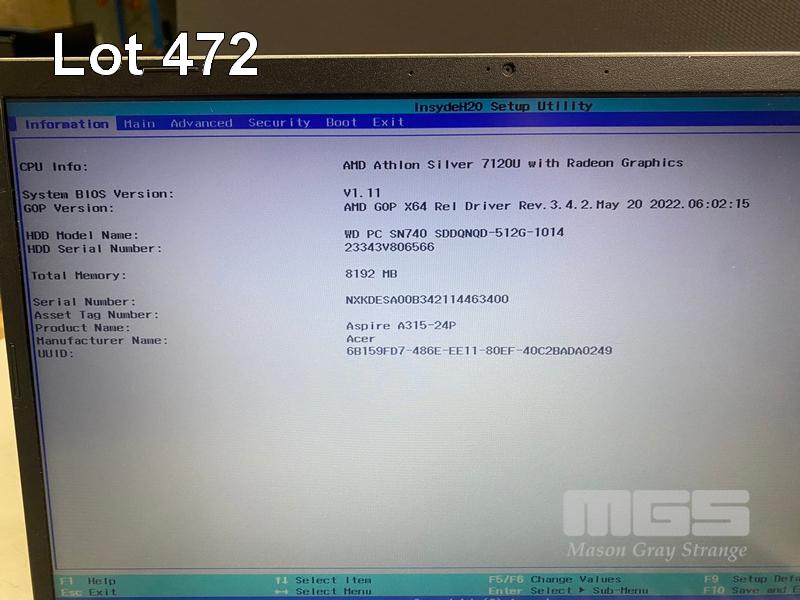 LAPTOP, ACER ASPIRE A315-24P, AMD ATHLON SILVER 7120U @ 2.4GHz, 8GB RAM, 512GB NVMe M.2 SSD, 15.6" WIDESCREEN (1920x1080), Wi-Fi, BLUETOOTH, WINDOWS 11 HOME INSTALLED & POWER SUPPLY S/N:NXKDESA00B342114463400